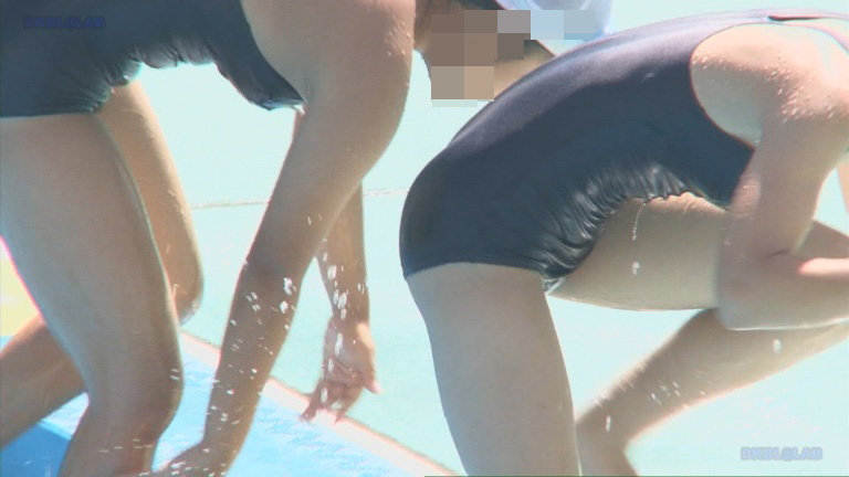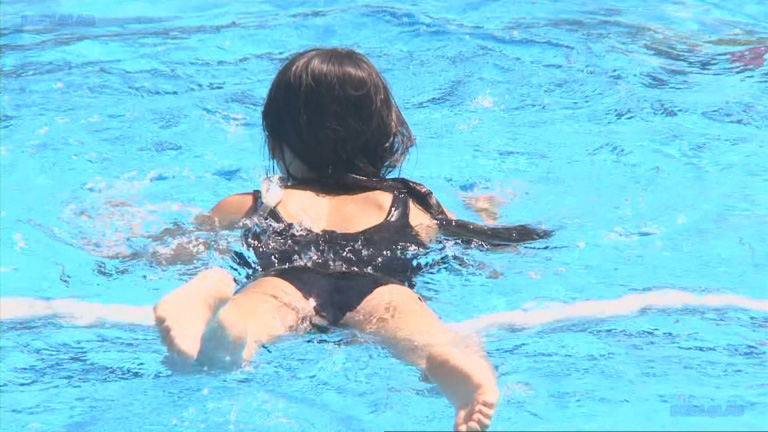 前半は後期型白タグ水着チーム、後半は前期型赤タグ水着チームを中心に!このチーム独特の水中ボール遊びや騎馬戦のように1人の肩の上にもう1人乗っかるなど、自由プールを満喫!”もう疲れた”とプールサイドにたたずむ水着娘の表情が素晴らしい!コースロープに体を乗せてプカプカさせている水着娘のシーンなどもございます!
