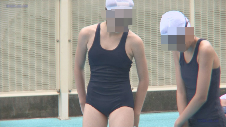 好天のなかビート板を使った水泳レッスンシーンから!片道行ったらいったん水揚げしてまた泳いで折り返すので結構忙しい。息を弾ませコーチの指示に従って黙々と進めていく凛とした姿がいいものです。33分ころからは次のチームへ。。。水着の肩ひも部分にスイムキャップとゴーグルをはさむ娘、一瞬の出来事にドキドキ!2つ結び髪の赤タグⅤ型水着娘の入水ですぐに濡れるので適当に縛った感じがいい!