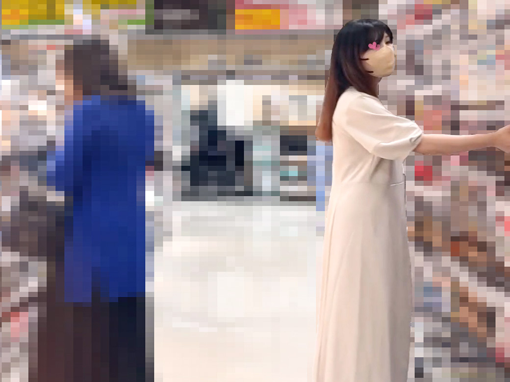 全裸店内徘徊。ワンピースの中は美乳とパイパンまんこが丸見え♡衝撃ローアングル【素人】