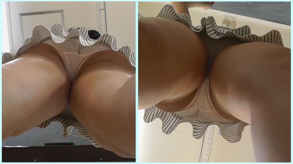 カメラは徐々に下へ移動して真下からパンチラ