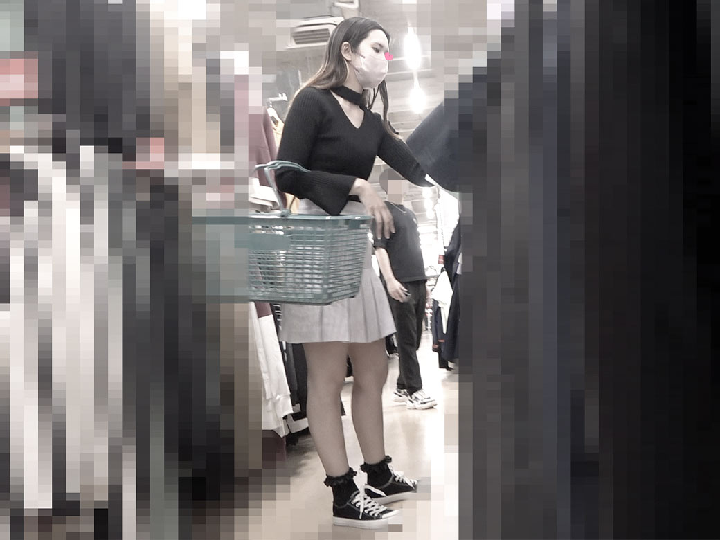 脚立パンチラで激食い込みのお姉さん。某スポーツショップで協力者と撮影。【禁断の逆さ撮り】Vol.60