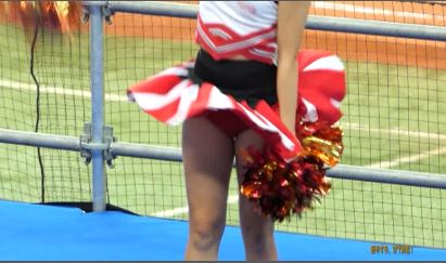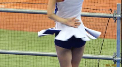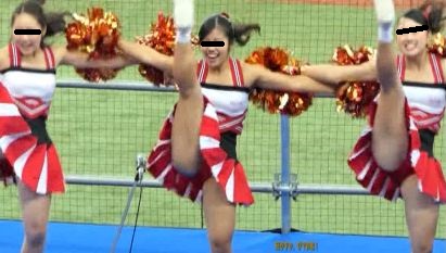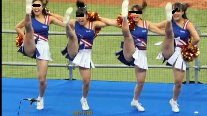 “演奏家”さん、談、『白スカート×紺アンスコ:4名、赤スカート×赤アンスコ:4名。大学生チアのようで動きも良いです』全体に、非ギャル系①白スカートちゃんたちは、ヘソ出し。紺なターン、ラインダンスキック、キャッチetc. ②赤スカートちゃんたちは、タンクトップ風。赤なハイキック、ラインダンスキックetc.