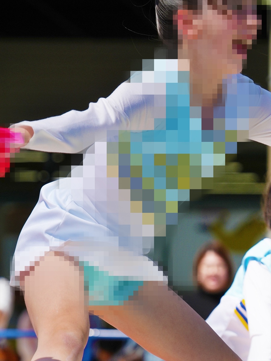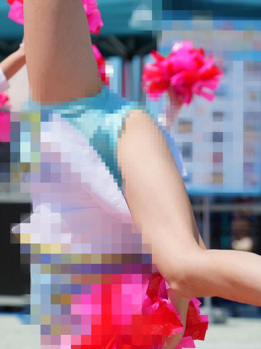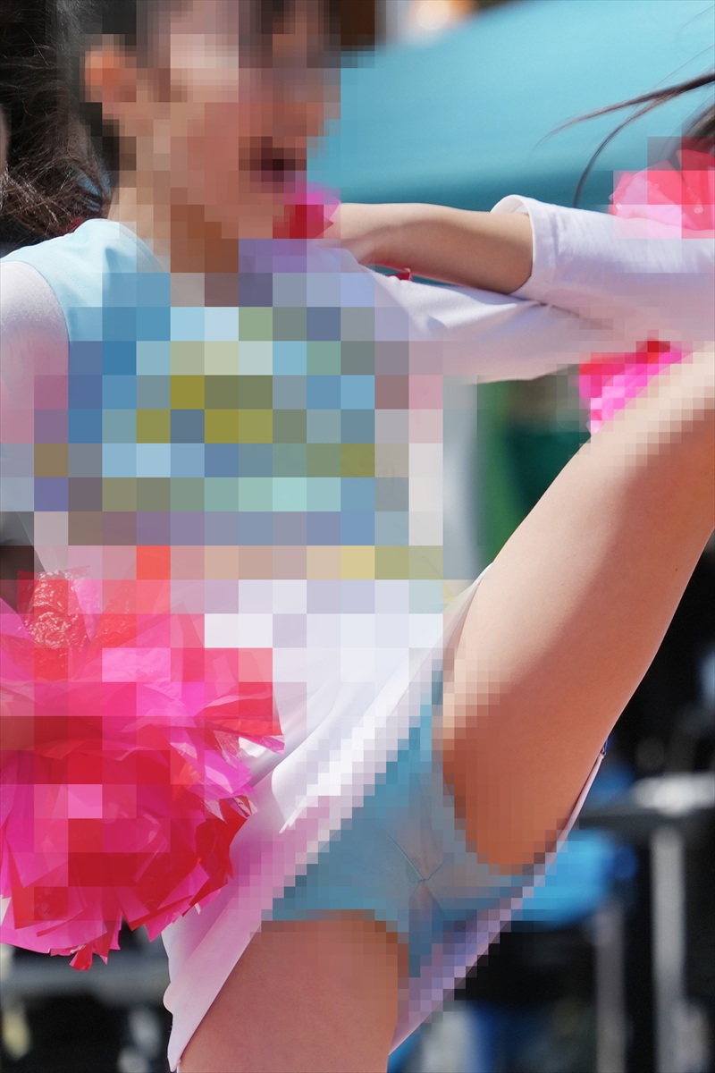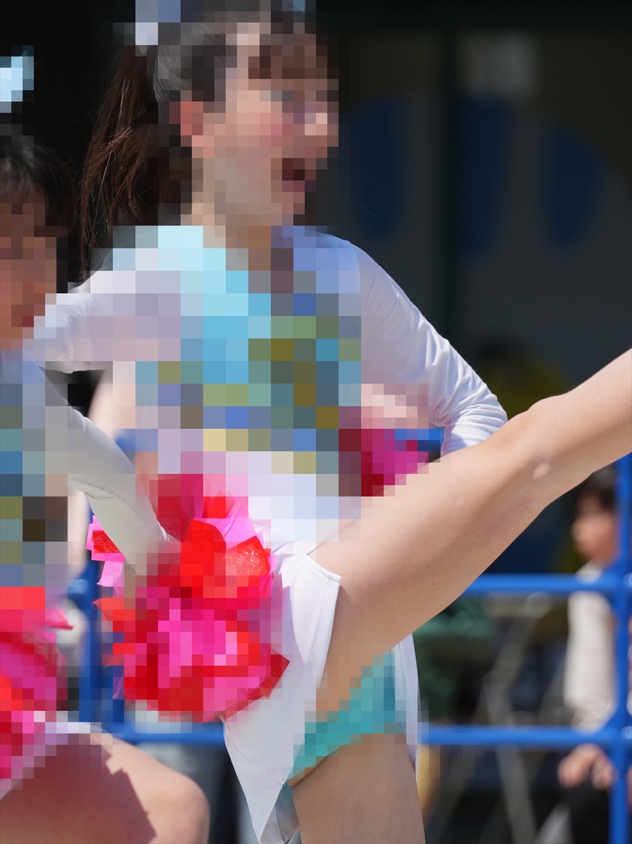野外で行われたチアチームの演技を静止画撮影したものです。