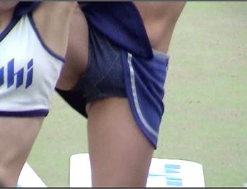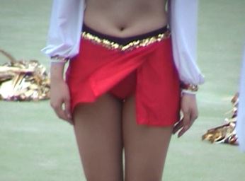 ◾ここ↑ とは逆に、露出度の高いミニスカ(に変更した)チーム……某大学チア時代に、本シリーズにも何度か出ている、美人なお色気むんむんちゃんを。