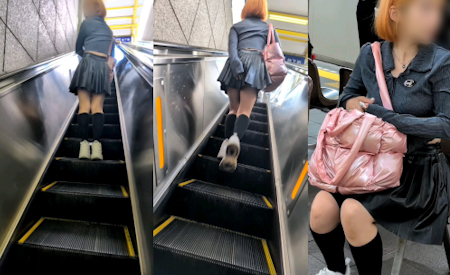 と、思いきや、最後のエスカでめちゃ警戒されてスカート押さえて上って行っちゃいましたw
