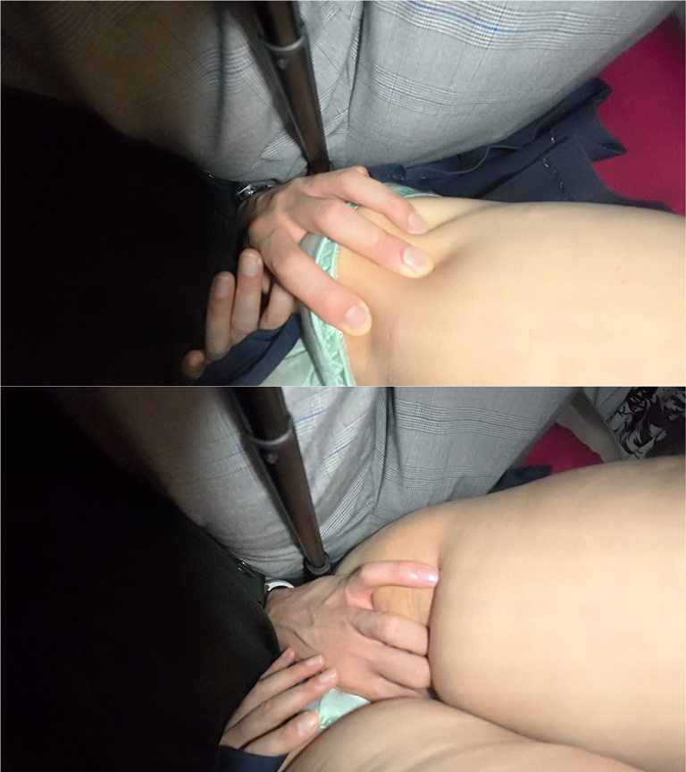 発車後、スカートを捲り、指先で少しずつお尻に触れていく。