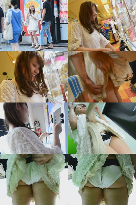 クレーンゲームに夢中になっている背後に回って、公衆の面前でかわいいフリフリのスカートを思いっきりめくり上げてやった!!