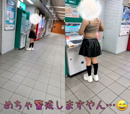 追跡を続けていると一旦ATMで立ち止まるお姉さん。(あとで見返すと僕を避けた?)