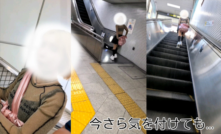 その先のエスカでも後ろにつくことには成功しましたが、鞄でスカートを鉄壁ガードで逆さなんてできず。