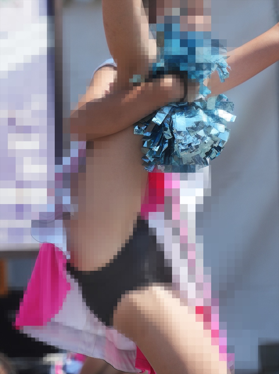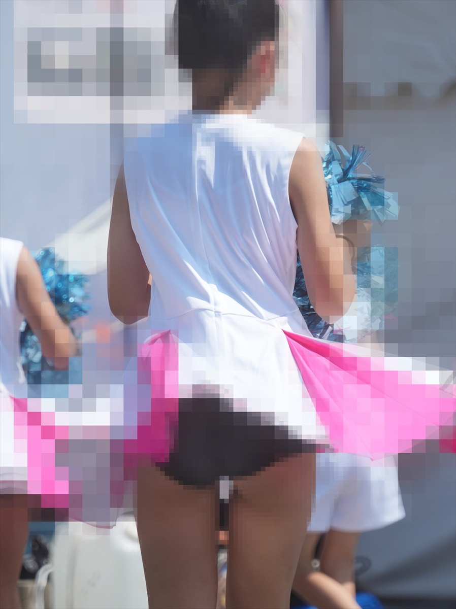 野外で行われたチアチームの演技を静止画撮影したものです。