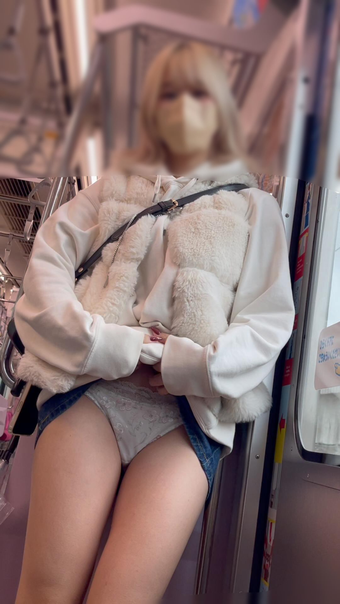 JD盗撮日記58 久しぶりの登場!!派手髪の激カワミニスカJDを電車内で盗撮【※完全主観30分超撮影】