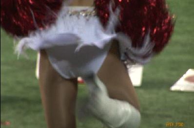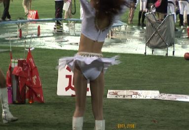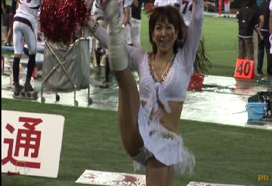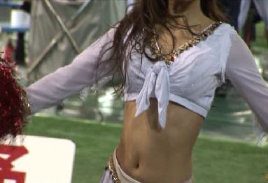 ◾某年12月の応援映像……長袖。ヘソ出し。いつもの、ノリのよさそうなお姉さんは、ほんの少々。今回は、高身長でセミロングの、S的雰囲気ちゃんがメイン。超ミニの白なモロターン、ハイキックチラetc.