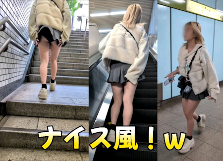 うち2名は風の強い地下通路で。スカートが捲れるのなんのw