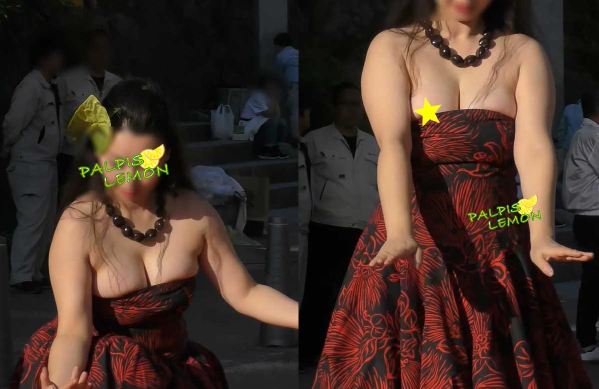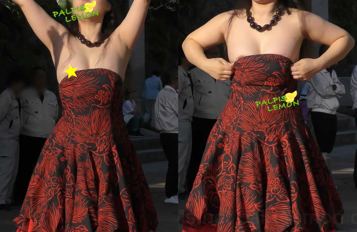 ②フラパフォーマンス。肩紐がない衣装で登場のお姉さん。最初は何事もなくスタートするも徐々に意図してない方向へ。何度かズリ落ちを直すも手を伸ばすとまたしても…。最後は直すのを諦めてしまいました。