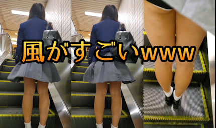 エスカでは風が凄く、スカートも簡単に捲れ上がりw
