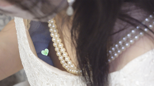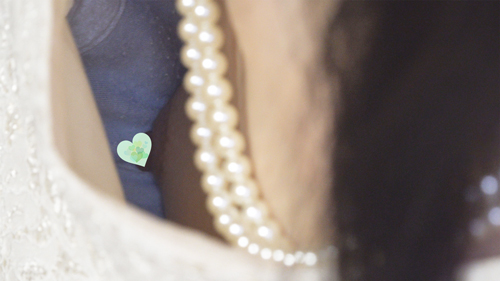 綺麗なドレスを着たお姉さんがブーケ作りをしている所を私がお手伝いしながら近付き