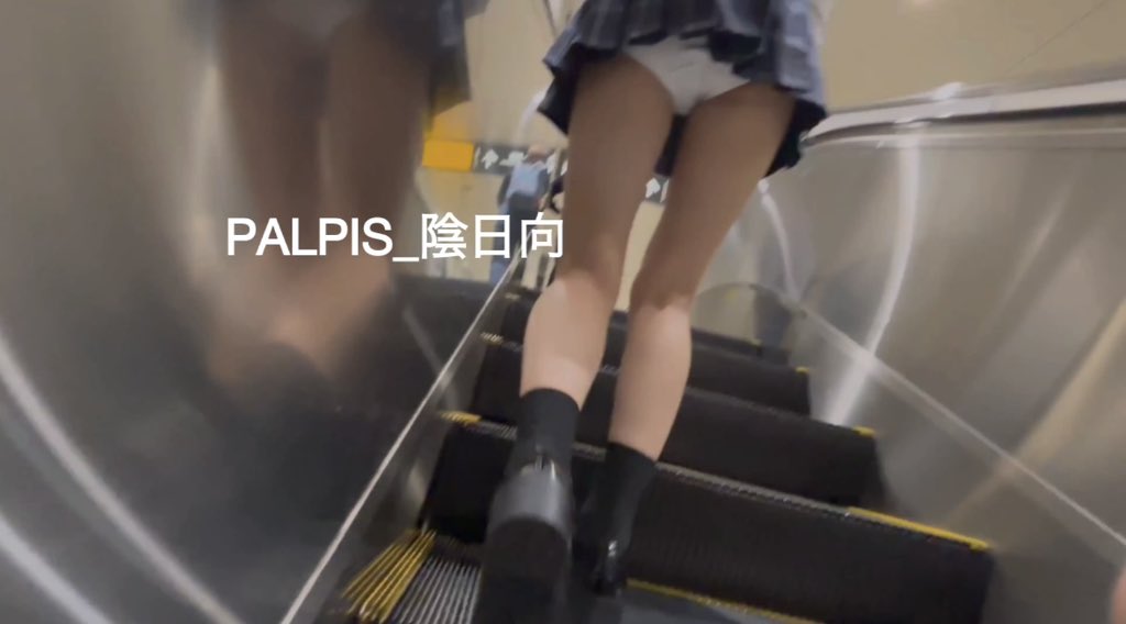 歩いてる状態ではギリ見えないが、エスカの水平目線では下尻と白のパンツが見えてる。