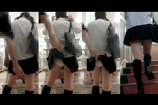 店から出た後は階段を登っている所を追いかけながらめくり上げる超危険行為を実行しました。