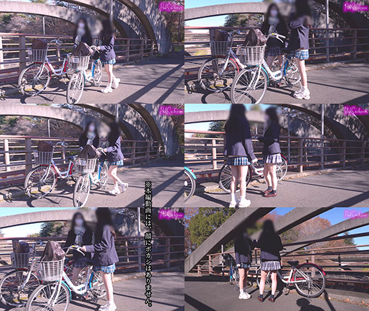自転車通学・帰宅途中みたく、路上に立つミニスカ制服JKちゃん2人組