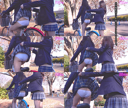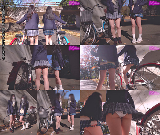ミニスカ制服自転車娘2人組(2) 自転車パンチラ尻