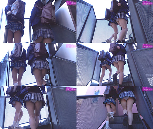 2人並んで階段を上るダブルパンチラ(尻ドアップあり)