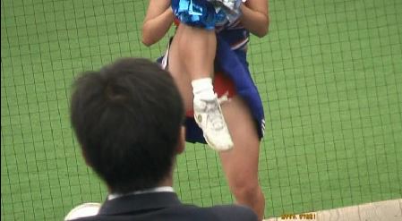 KMさんは本年度初登場。チーム自体の特色なのか、勢いがないとこの角度にはならない、鋭角な膝蹴り&キック。“遊び人”さん、談、『ギャルっぽい雰囲気も持っていながら、チアらしい可愛さとか優しさも見えます』。