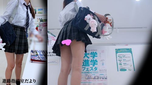 某県の少し偏差値の低めな高校の進路指導室にいます。 スカート短めJKが多いので毎日ムラムラしてました。 そして欲望に負けて進路指導室に来るJKを撮ってしまいました。 |