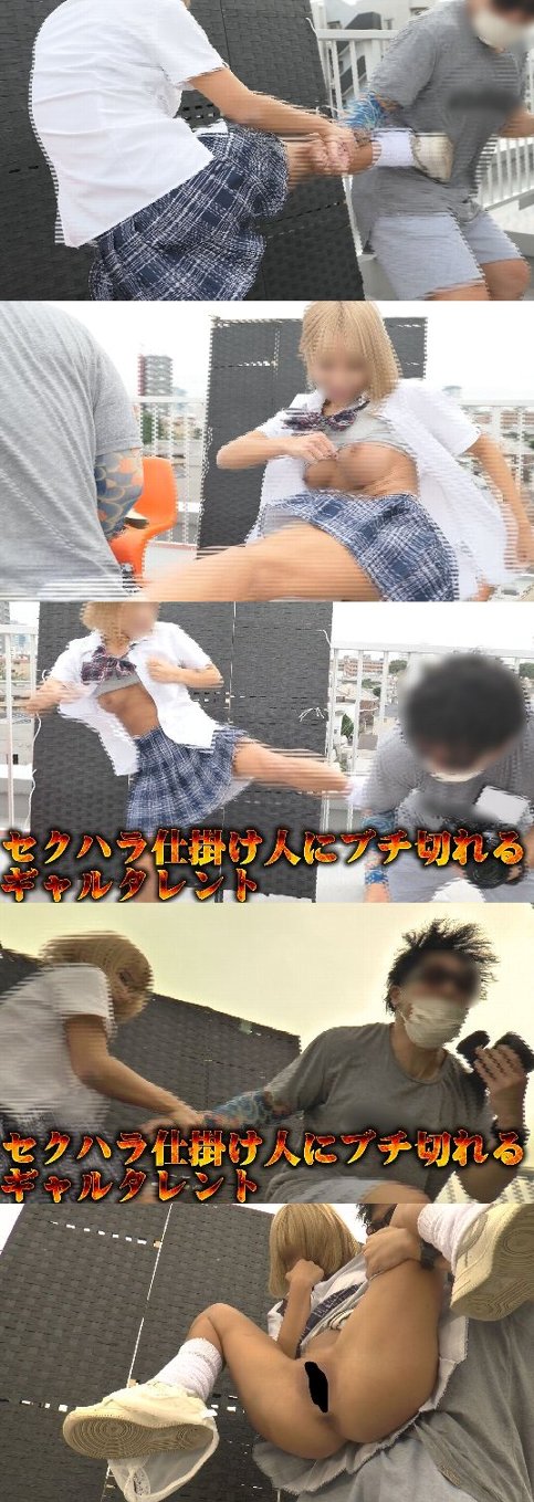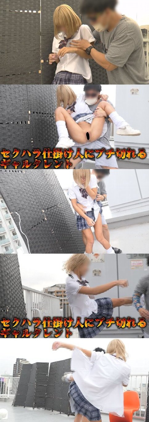 撮影イベントの最中に仕掛け人の男がギャルタレントにセクハラでせまります。