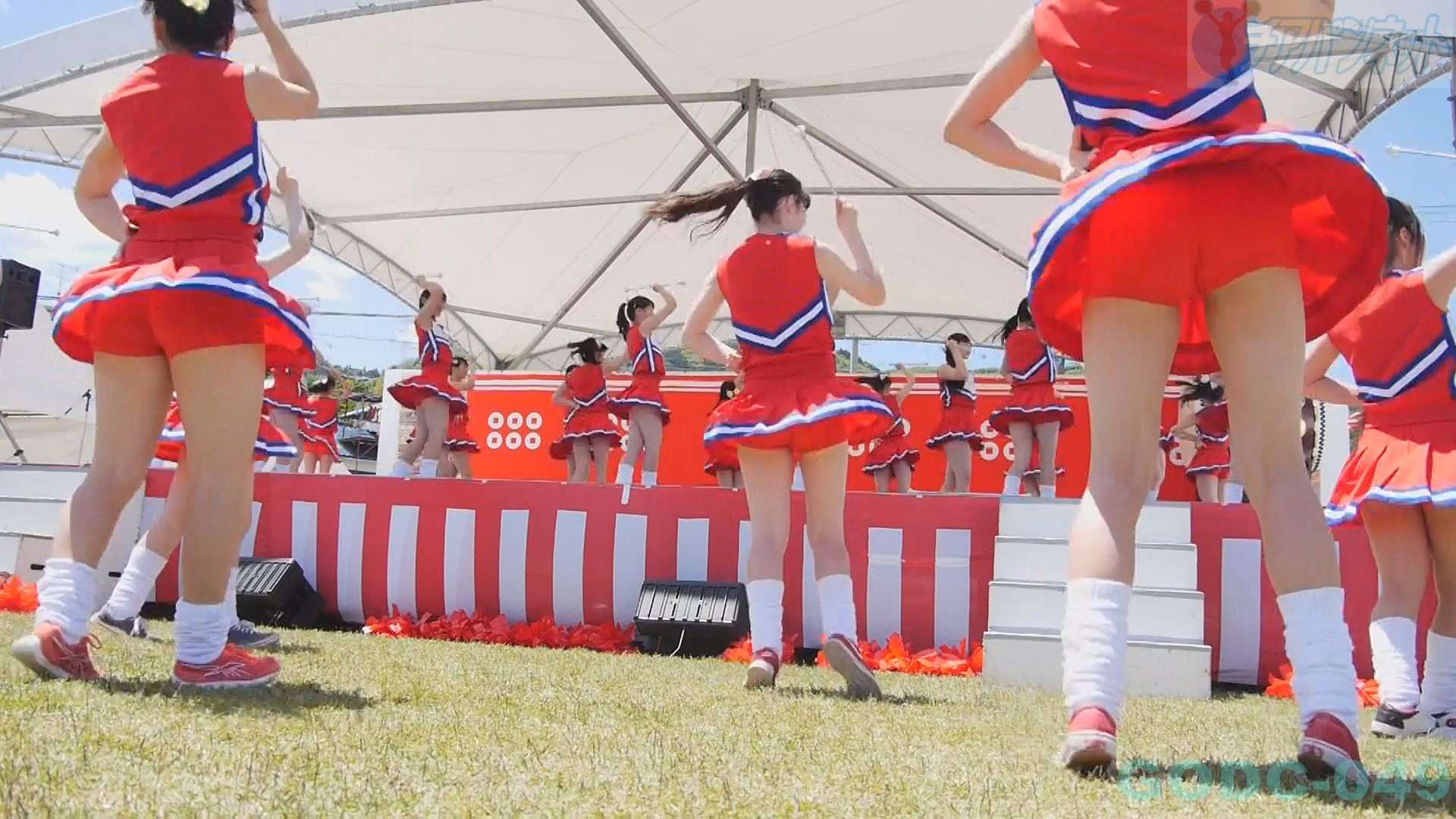 固定カメラでの撮影で思ったよりチアが近づいてきてしまったため、嬉しい誤算のドアップ映像になります!