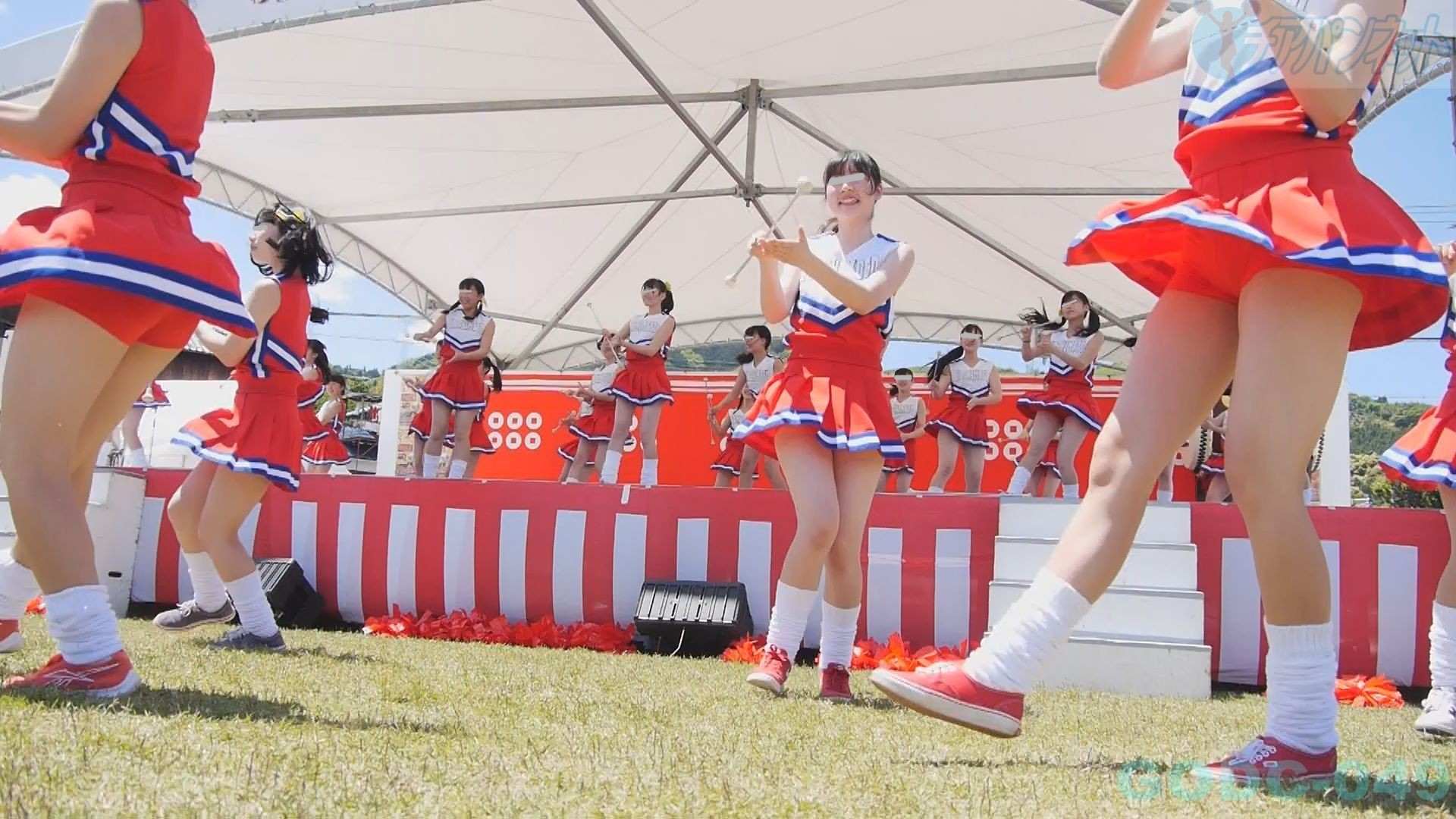 前半はバトン、後半はポンポンの演技で、かわいい曲でゆるい感じかと思いきや神ターン連発からの赤アンスコ丸見え!