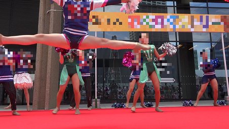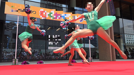 全景ですのでレオタード、短パンなど全員分が一望です。