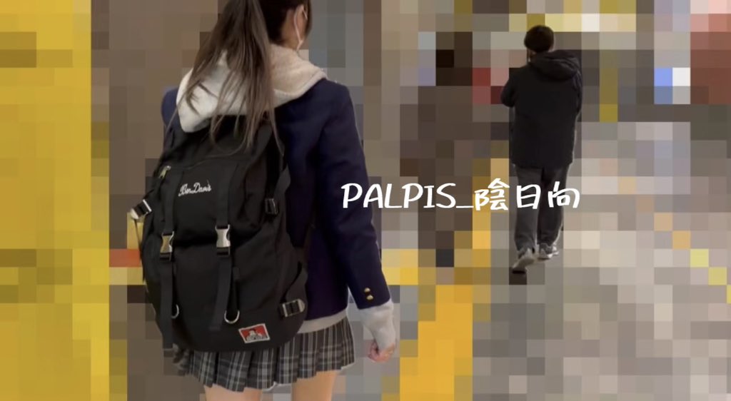 後からこの映像を見て気づいたのだが、先ほどの不審男、彼女を撮って上段に駆け上がったあと、前にいた別のJK2人組も撮ってやがるではないか…