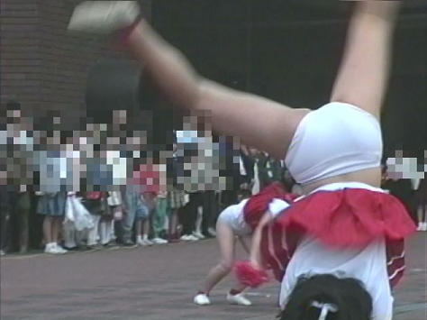 フレア系のスカート衣装でどのチームもひらひら状態。くるりくるりと回れば期待どおりに舞い上がっています。真っ白なチアショーツがモロ見えです。キックはもちろんチアリーディング的なスタンツや側転なども披露。2番目のチームはメイド的なコスでダンシング。