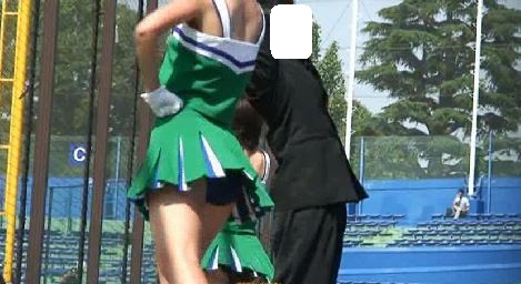 •こちらも裾が広がるタイプのスカート。3人が3人ともアンスコの色が別々。このアバウトさも伝統でせうか、さすが、N嶋さんの母校 。むろん、アップ多用。