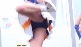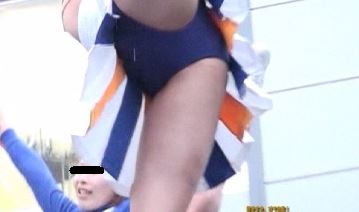 ◾KN女子大……“チアガール千年愛”シリーズではお馴染み。雨もよいの舗道にて。十余人ちゃんのブルーな大の字ジャンプ(×2)、空中回転(×4)、落下、ターン、しゃちほこ(×5)、Y字パランス(×6)という、粋をこらした山なす連続チラ・大技モロの途方もないサービス尽くし。なお、しゃちほこチラの中には、足を軸にした東西南北回転も。しゃちほこならぬ、これぞ当地ならではの新技・風見鶏チラか (30分)