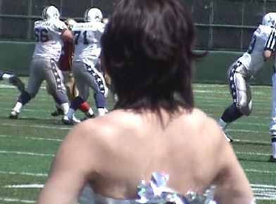 最後は、再び試合場。ぴたぴた&ぴっちぴちのシルバーのホットパンツ。このチームに限っては、スカートよりも遥かに良いと思わせる、極小のそれに最低限包まれた、形の良い小尻群が最高! 天候も幸いし、パンストの光沢もいい感じに出ています(9分)。