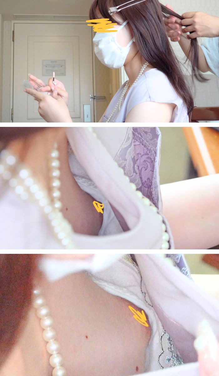ドレス姿のお姉さん♥ヘアメイク中の胸チラ&パンモロ