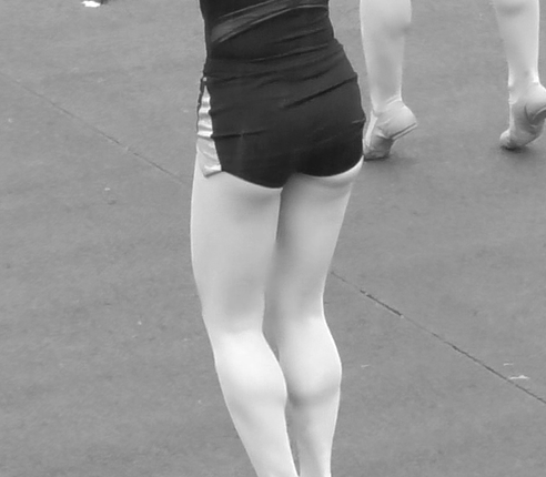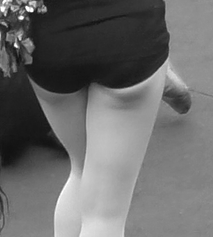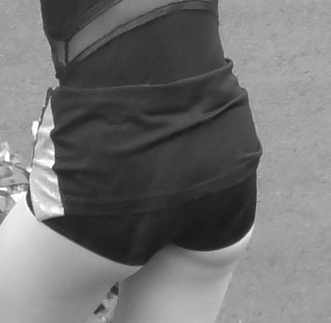 見どころはタイトスカートから飛び出る黒スパッツです。