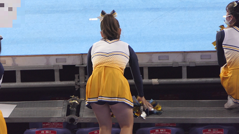 黄スカート&黒スパッツで応援。依然と衣装が変わってしまいましたが黄色スカートは抜群に目立ちます。