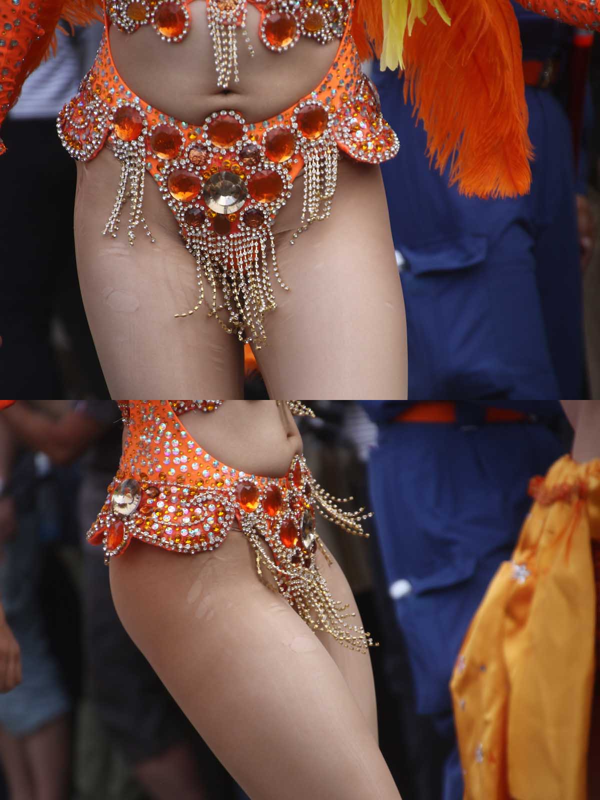 こちらの商品はそのサンバチームの中で一際明るい笑顔を振りまく肉感たっぷりの女子大生ダンサー。ぶりんぶりんのヒップに弾けそうな太もも。また窮屈に締め上げられた太もものせいか、躍動的に踊るあまりフェチの方には堪らないパンティストッキングの激しく伝線する模様もしっかりと収められています。^^;