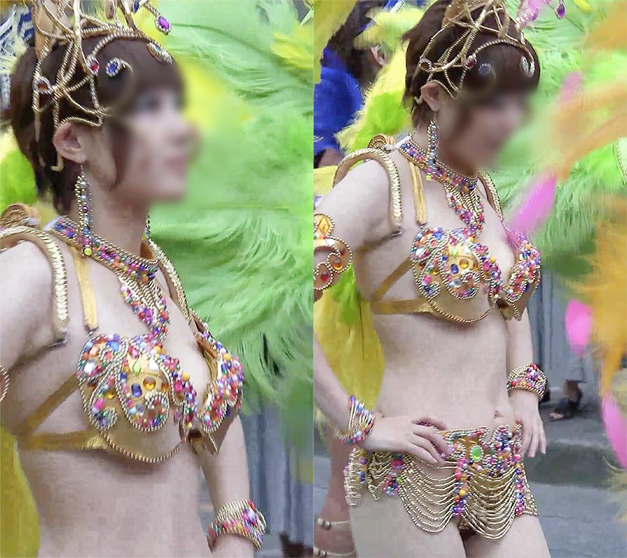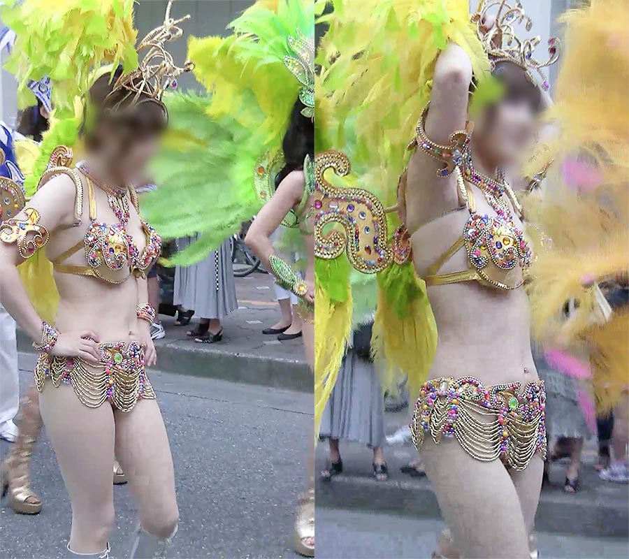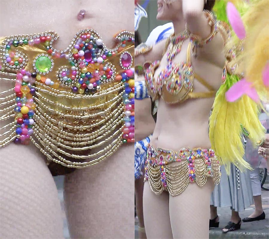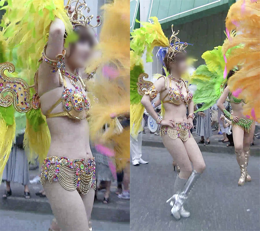 浅草を代表するサンバチームで一人一際目立つ雪のようにモチモチ白肌の美バストのショートカット美女ダンサーがいました。ルックスはアイドルのように可愛らしく、たわわな柔らかそうなモチ肌のバスト。宝石類をつなげたタンガ衣装に股間を覆う極小のパンツ、そこからすらりと伸びた白肌の美脚、全てがなんとも扇情的です。