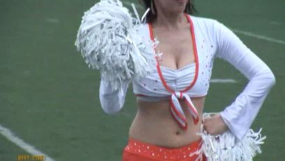 ◾某年の春……“Xリ※グ”では一般的となっている“いい女系”ではなく、例外となる“気品系”のチーム。長袖、ヘソ出し。すらっとしたお嬢様な美人ちゃんをメインに。シャーリングからの豊かなるハミ乳、オレンジな(時たまの)ハイキック、だっちゅーのポーズ風etc. 後半のMCちゃんも、上質な美的ちゃん(62分)