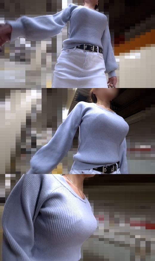 前半の街歩きでは、その豊かな胸元に釘付けになりました。特に横断歩道を小走りで渡る場面。ニットの中で大きな質量が上下に弾む様子は、布越しであってもその柔らかさを想像させてくれます。