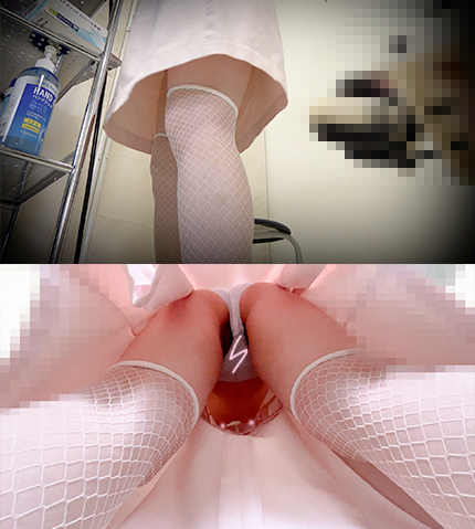 ノーブラ美人歯科助手の水色清純パンツからはみ出るまん肉と陰毛がエロすぎ♡【ローアングル/ナース服】