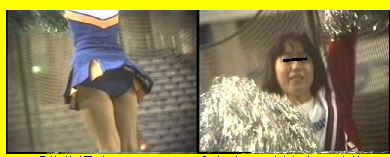 『次は※※重工**です。青のスコートから覗くプリプリしたお尻が堪りませんでした。舞台で待機している赤のチアがすり足でおずおずと歩くと、後ろから、はみ出たお尻が拝めました。席に戻ってこちらにお尻を向けているチアがいたので、すかさずアップで撮ってあげました』