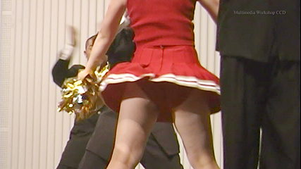 2005年の大学のチアリーダー演技(青、赤コスパン、3人ほどはみパンあり)。