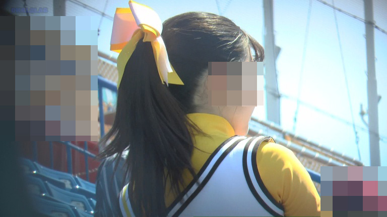 白・黄に黒ラインのチアチームの応援近接シーンから!