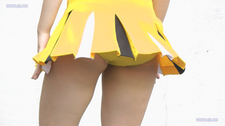 白チアユニ娘たちのバトン演技シーン、時折お目見えするピンクのVアンダーがかわいい!!