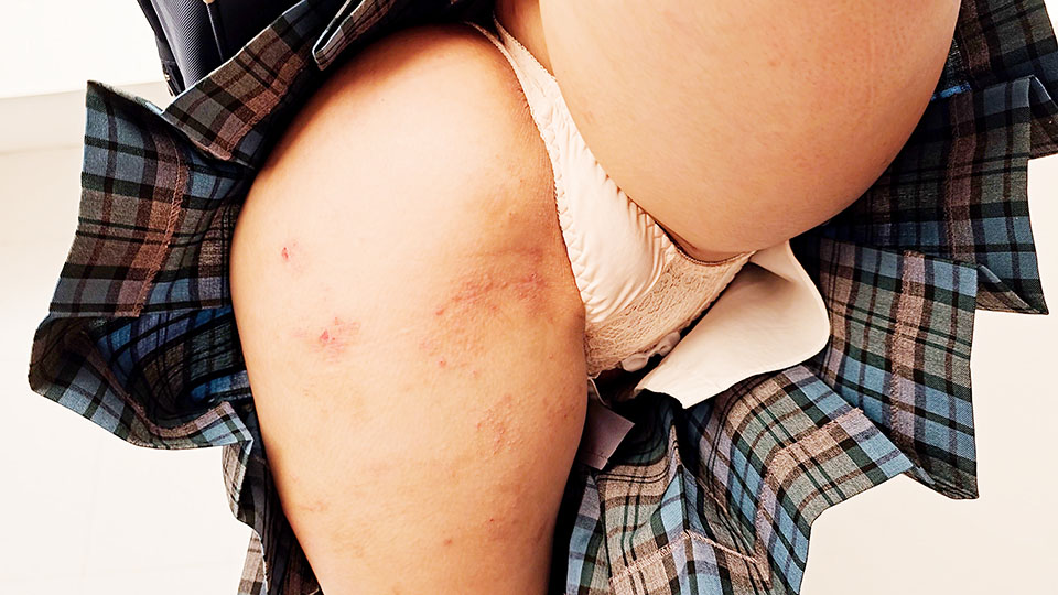 え?!アソコからなにか垂れてる?!ノーパン登校3名ねんいち800円 -