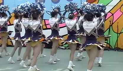 最初はサッカーの試合のハーフタイムショーに出演したT大学とC大学のチアリーダー演技。